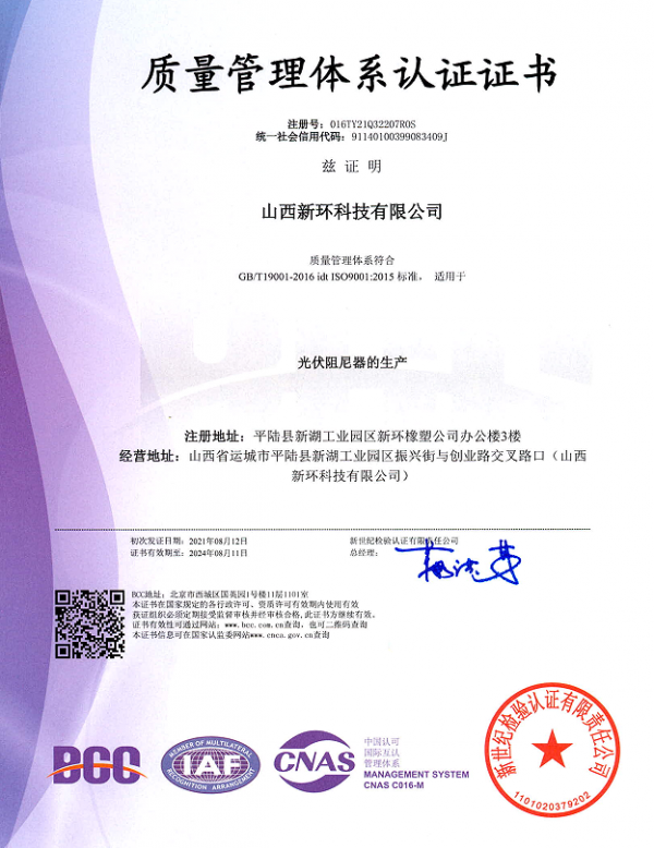 • 環(huán)境體系證書